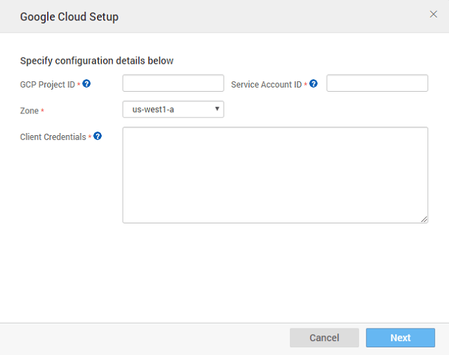 • Google Project Id: It is the project created by you on Google Cloud Platform. All resources are referenced with this project. (see here for details)