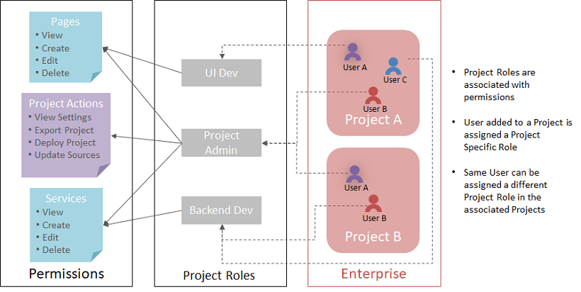 2. Project Roles: Developers & project leaders who are involved in the application development using the platform.