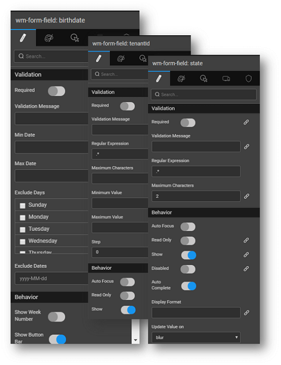 - behavior like Auto Focus, Read Only, Show etc can be set.