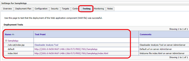 8. Select the Testing tab to access the deployed application.