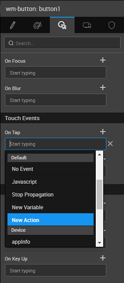 Binding the Navigation Action to a Widget event - For example: Touch Event like on Tap – Use the tap touch event to trigger a Navigation Action to move to a new page or segment.