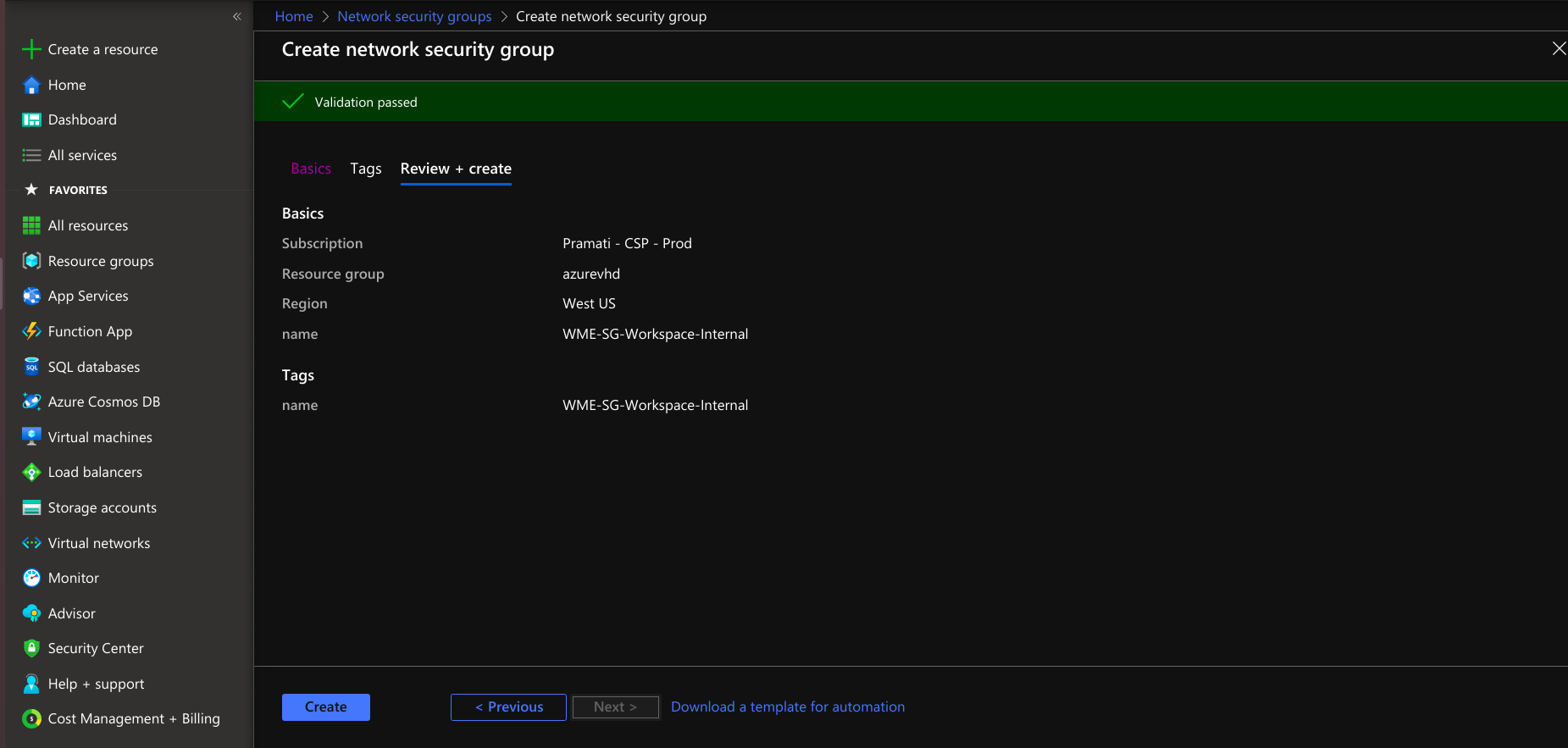 Creation of network security group for Workspace/AppDeployment virtual machine
