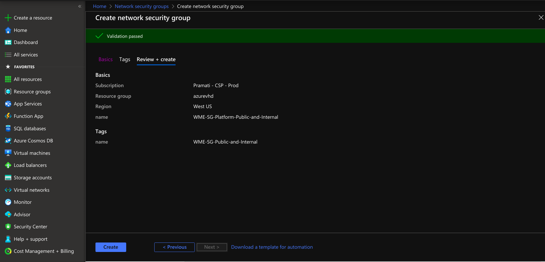 - Provide tags that are name-value pairs for the network security group for categorizing the resources.