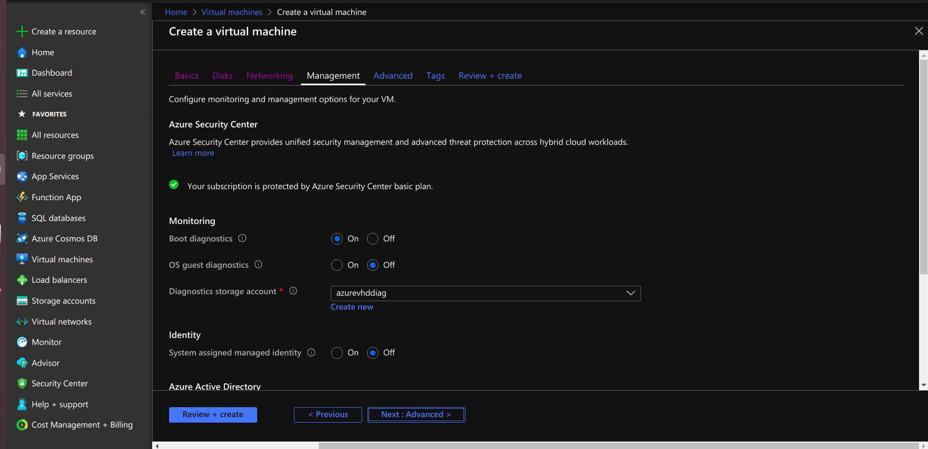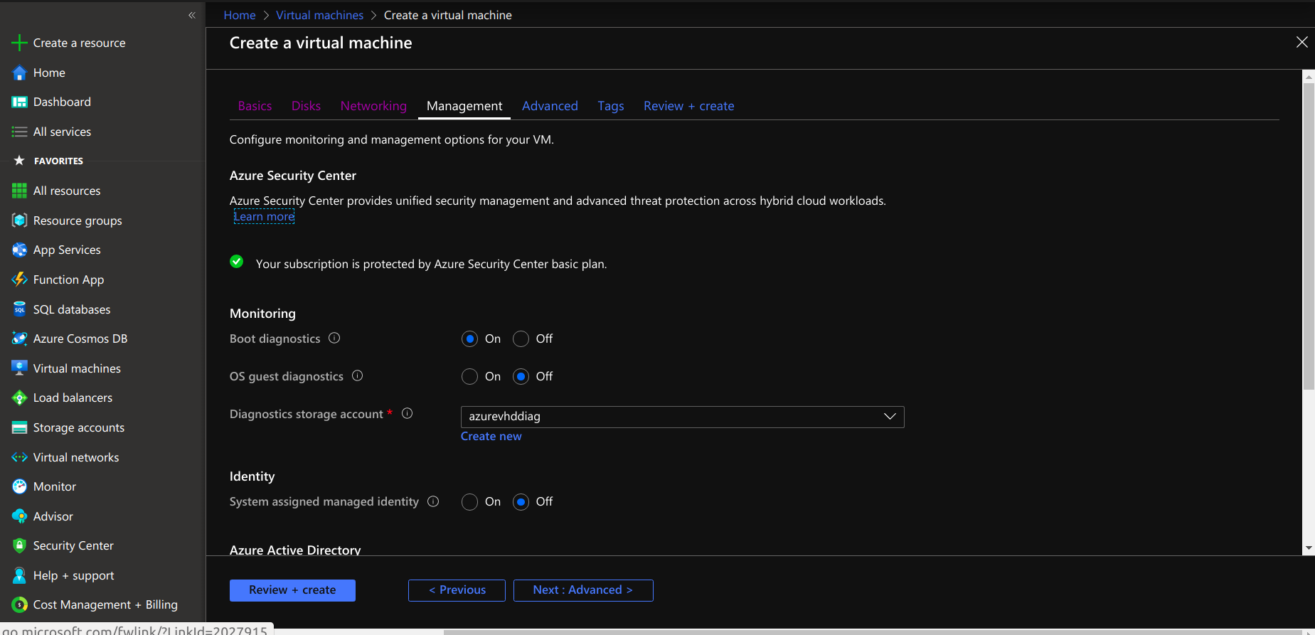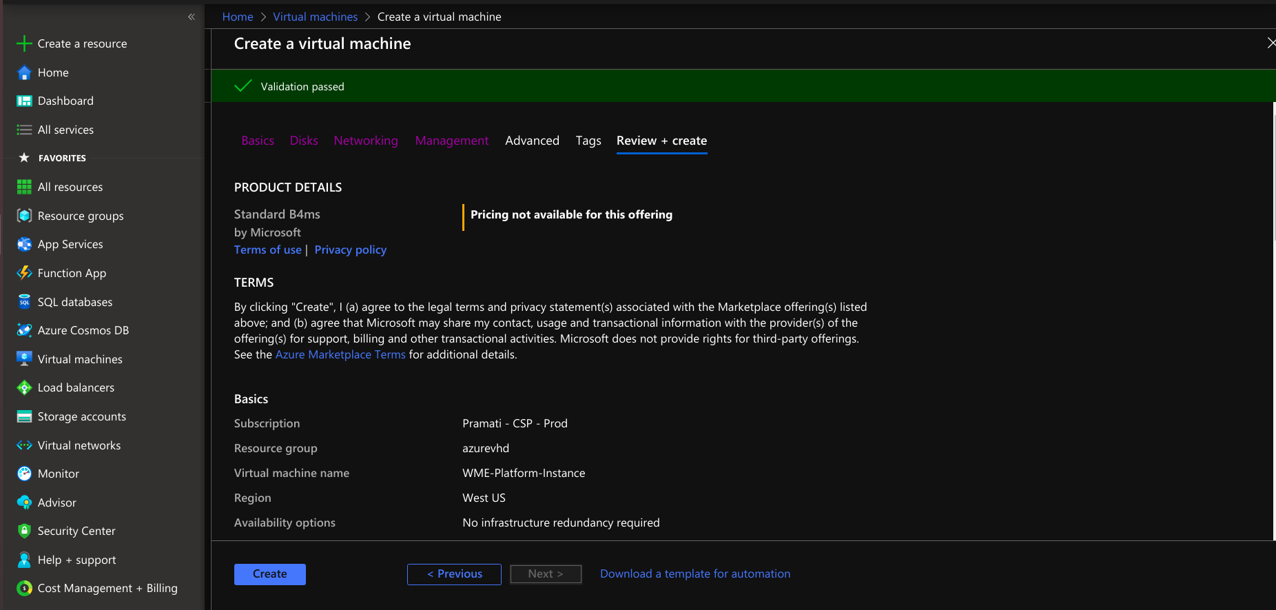 - After reviewing the virtual machine select creation option for creating a virtual machine.