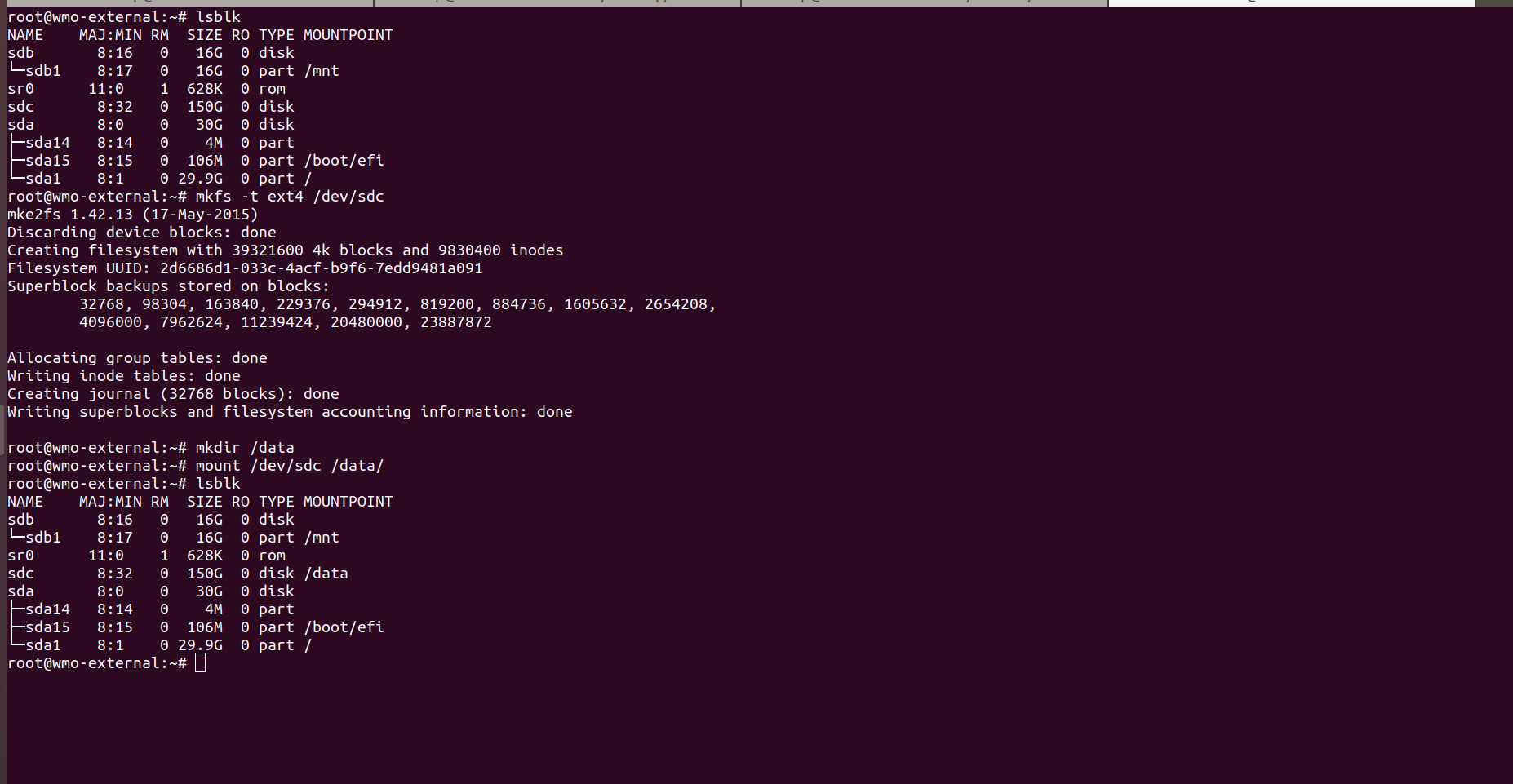 Command : mkfs -t ext4 /dev/<block-device-name_1>